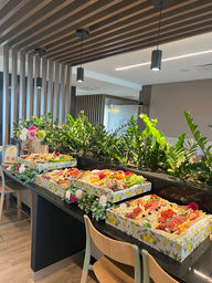 * Fresh mixed vegetables crudités with our flavourful roasted chickpea hummus